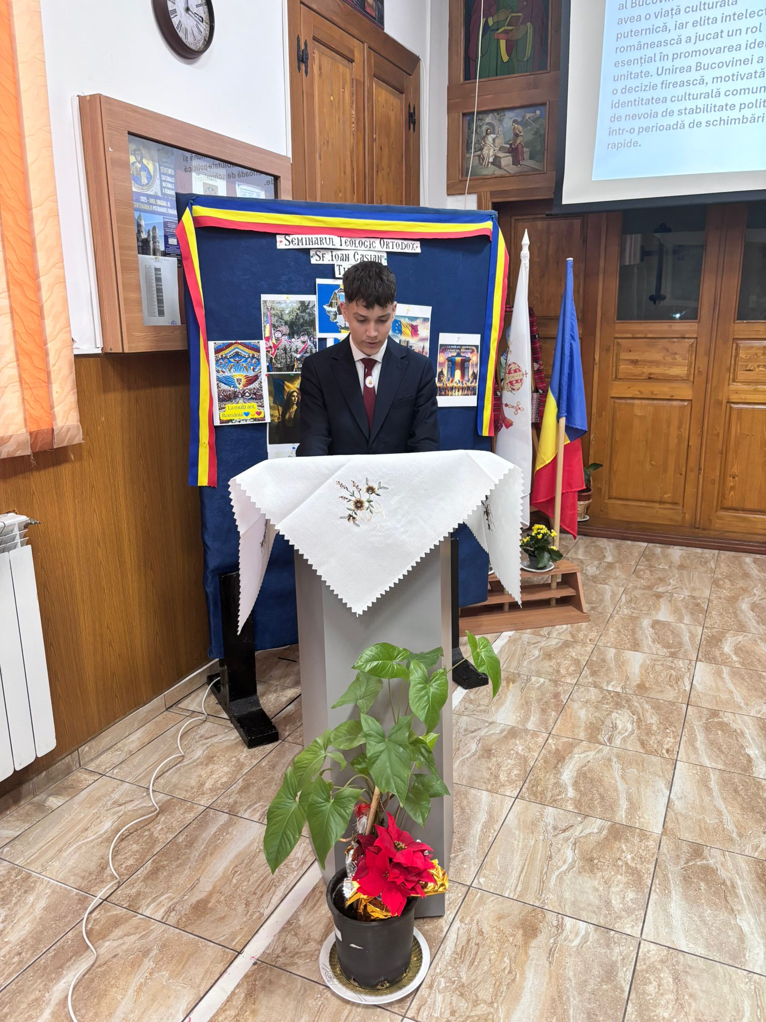 În cadrul evenimentului, corul seminarului a intonat cântări patriotice, aducând în sufletele celor prezenți emoția și recunoștința față de înaintașii noștri și față de România. De asemenea, elevii seminariști au rostit poezii cu tematică națională și au prezentat referate dedicate semnificației zilei și rolului Sfântului Apostol Andrei în formarea spirituală a poporului român.